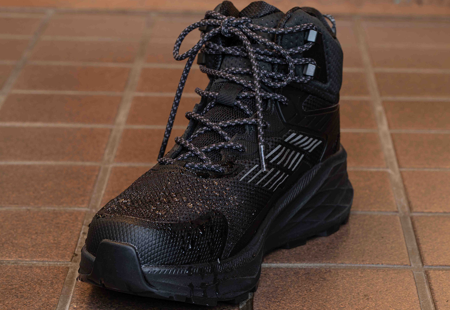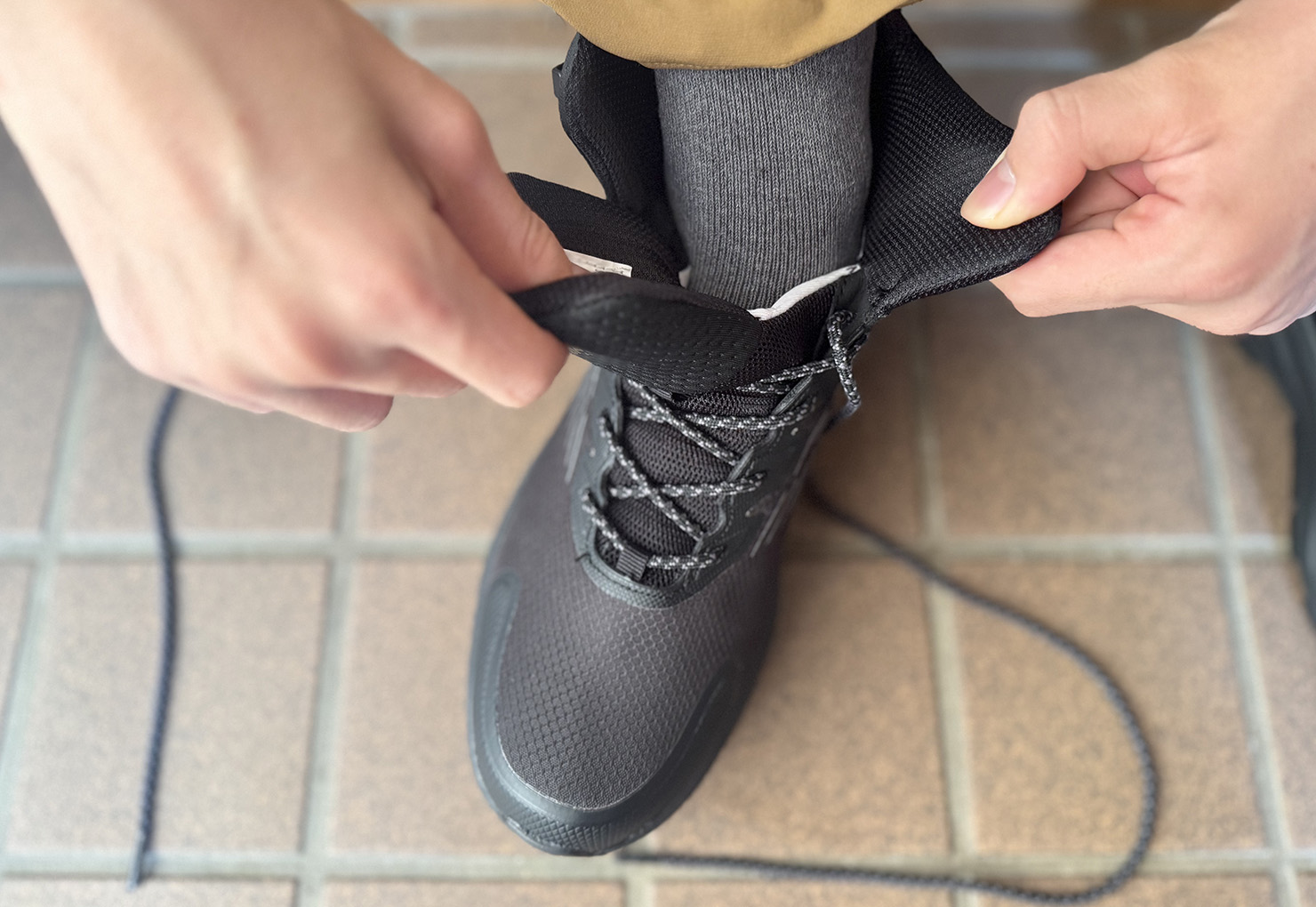 シューレースがあるデザインでも、内側は8cmあたりまで繋がっているためしっかり防水