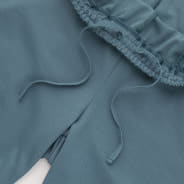 ウエストはゴム仕様で着脱しやすく、内側に備えた腰ひもでサイズ調節が可能。《主な機能》