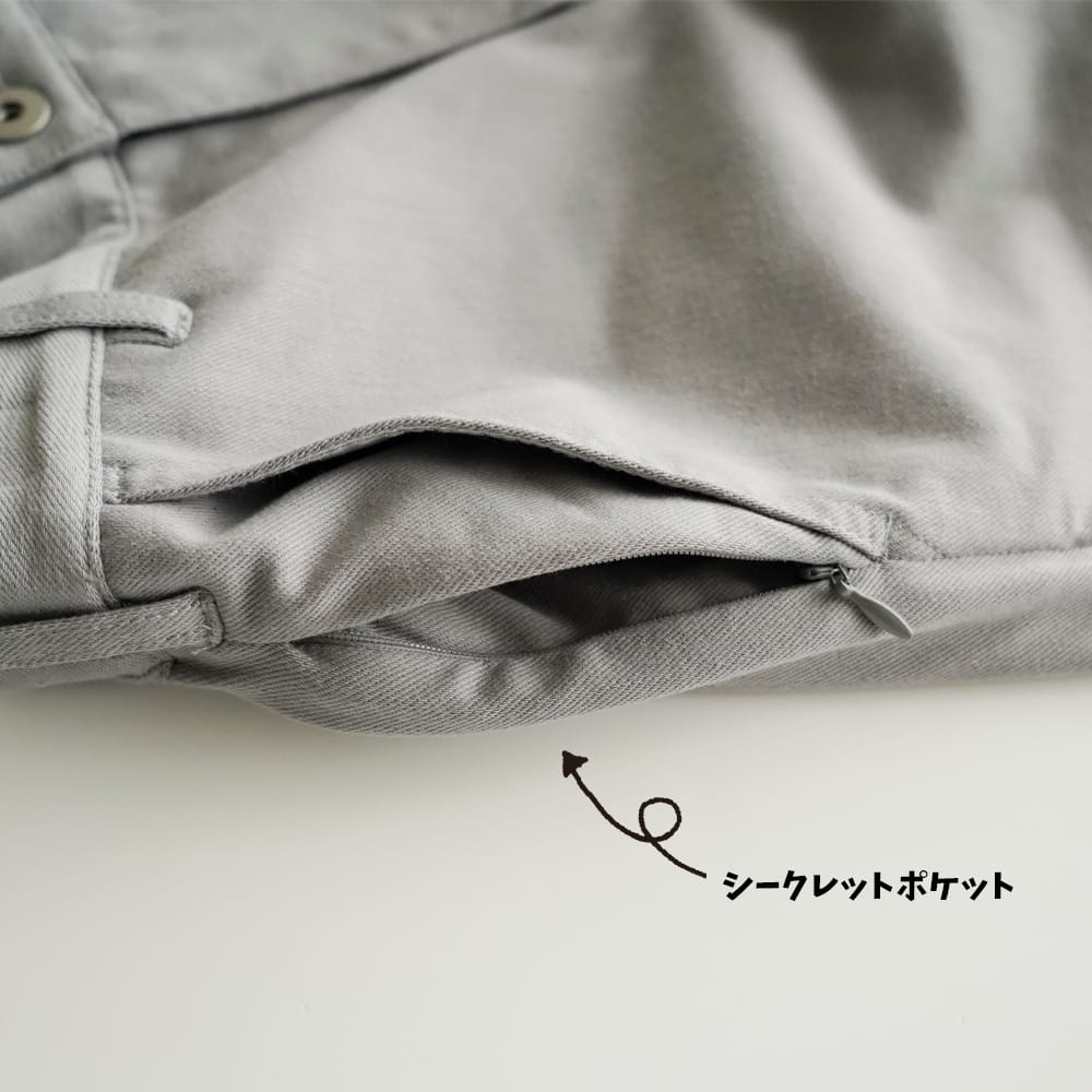 ●商品の特徴●こだわりの機能・水を弾く撥水加工付きで、多少の雨や水に濡れても安心!・ラクラクストレッチで動きやすい!伸びた後もしっかり戻って元の形に◎脱ぎ穿きラクラク&快適な穿き心地・ウエストは伸縮性のある後ろゴム入り・フロントは、ボタンとファスナーの前開き・リブ編みの裾は、しっかりフィットし動きやすい小物の収納に便利なポケット・前はサイドポケット&右脇にファスナーポケット・後ろ右にファスナーポケット付き