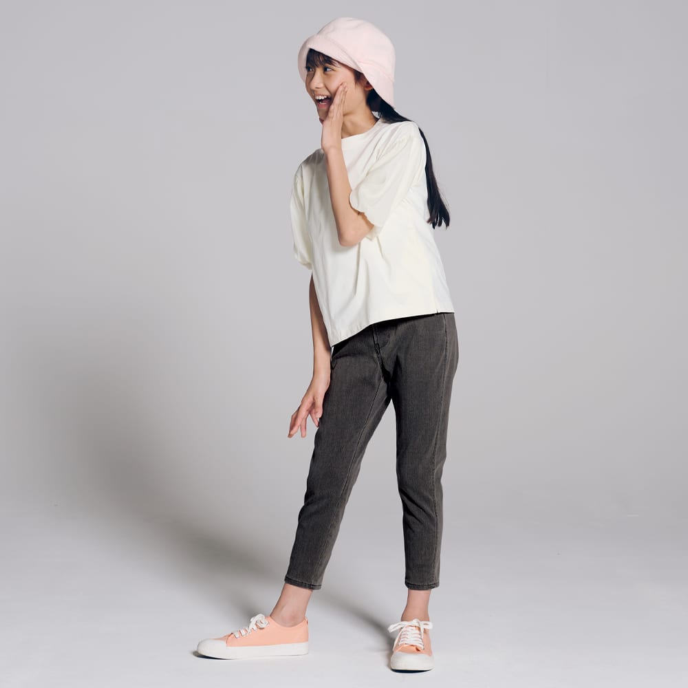 ・裾に向かって細くなるテーパードパンツでしっかりフィット