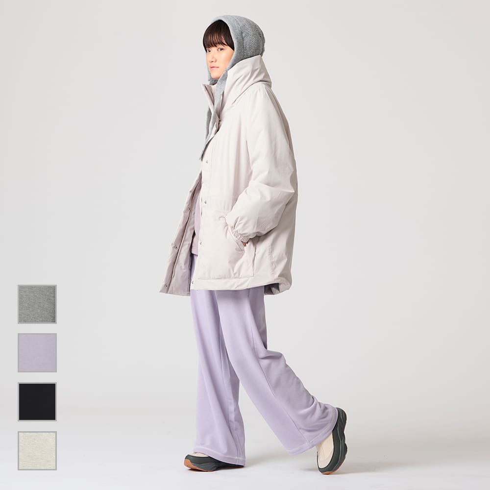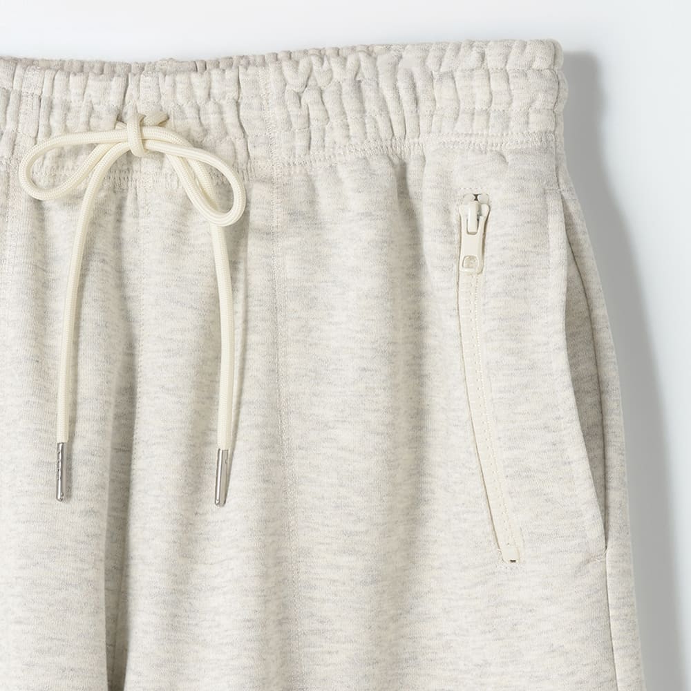 扱いやすさにこだわっており、毎日気兼ねなく使いやすいアイテム。裾部分に備えたドローコードで、好みのシルエットに調節が可能。ウエストはゴム仕様と腰ひもを備えており、快適な穿き心地。合わせるアイテムを選ばない、シンプルな無地のデザイン。ファスナー付きのポケットで、持ち物の落下を防止。
