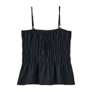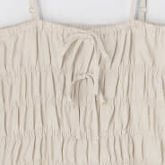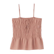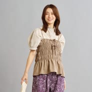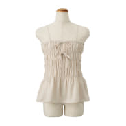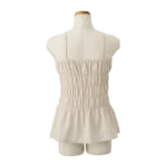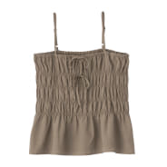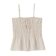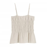 リネンのような素材の風合いを活かした、上品なシャーリングデザインが魅力。キャミビスチェ