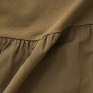 スカート部分には光沢のある素材で切り替えを施し、より洗練された印象に。