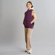 ウエストゴム仕様で着脱しやすく、外側に備えた腰ひもでサイズ調節が可能。