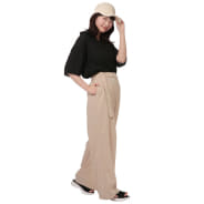 ツバ裏の明るいベージュカラーがレフ板効果を発揮し、メイクの仕上がりを引き立てる。