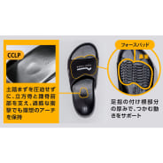 ●商品の特徴●・土踏まずを圧迫せずに、立方骨と踵骨前部を支え、過酷な衝撃でも理想のアーチを保持・足指の付け根部分の厚みで、つかむ動きをサポート