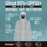 フワっと軽いイナレムエアに、UVカット95%(UPF50+)付きレインウエアが登場! UV AIRバッグインレインジャケット